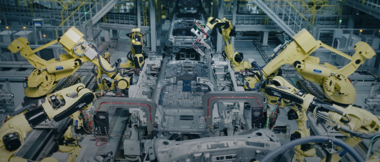 차체 조립 과정은 로보틱스와 비전 기술 덕분에 100% 자동으로 진행됩니다. 이 기술을 적용한