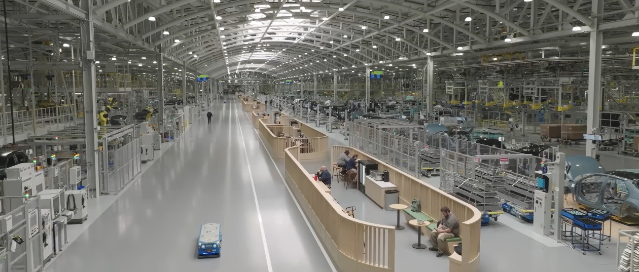 의장 공장은 효율적인 물류 운영을 위해 161대의 자율이동로봇(AMR)을 도입했습니다.