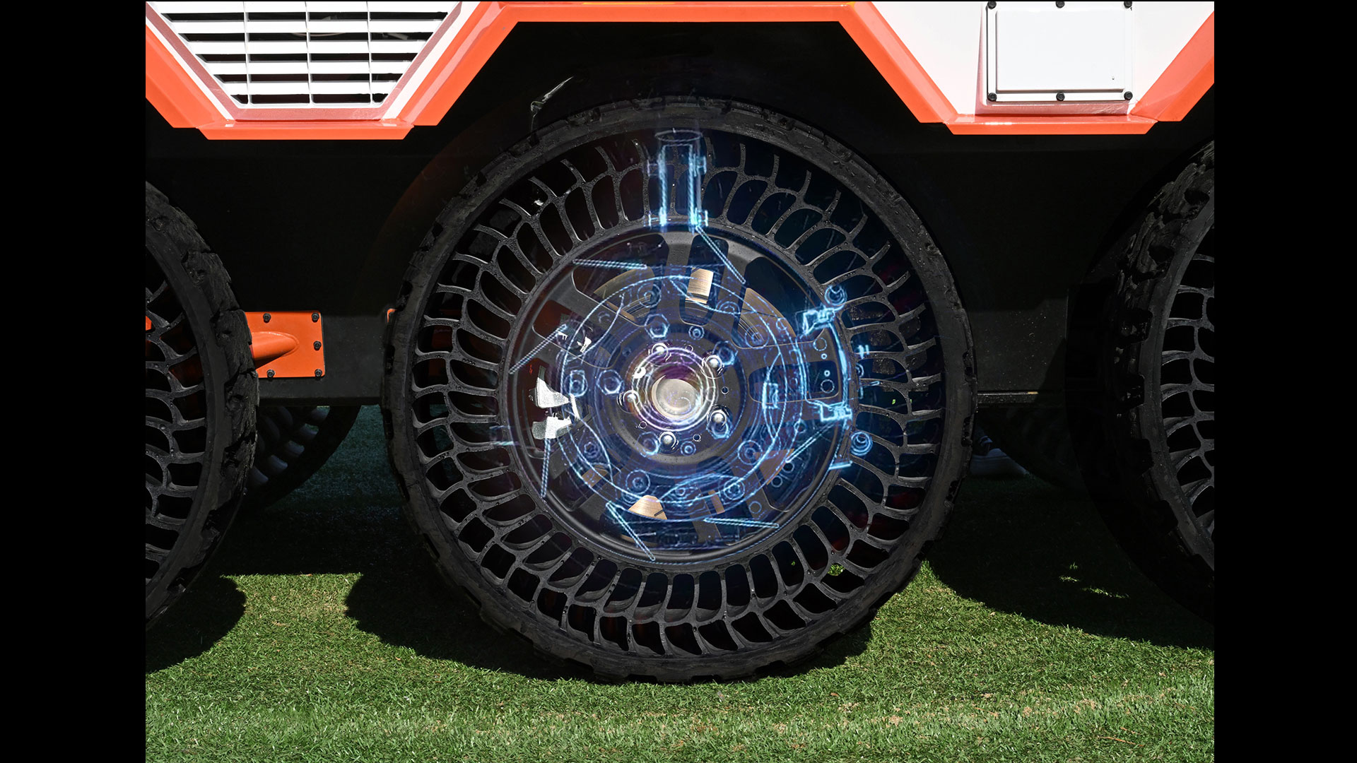 · 6x6 In-wheel Motor System: This electric powertrain from Hyundai Mobis places a motor in each of the six wheels, allowing for 360-degree rotation in place for exceptional maneuverability in tight spaces. It also features high durability through waterproof and dustproof electrical modules. By eliminating the need for a separate drive shaft, this design improves drive efficiency and control, showing significant potential for other mobility applications that require low-speed precision maneuvering, such as last-mile logistics robots and autonomous shuttles.