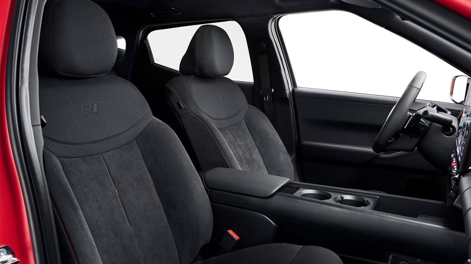 Despite its compact exterior dimensions, IONIQ 3 offers a spacious and flexible interior designed around passenger comfort, following a “Furnished Space” approach where elements are arranged like furniture to create a warm and intuitive living environment. A long wheelbase and flat-floor layout create generous legroom and headroom, while a large luggage compartment increases everyday practicality. The integrated Megabox provides additional, cleverly concealed storage space beneath the trunk floor. Depending on specification, IONIQ 3 offers features such as Relaxation Seats, heated and ventilated seating and carefully selected textile materials inspired by natural landscapes and 1970s Italian furniture design, including recycled and bio-based materials. A BOSE® Premium Sound System, dual-zone automatic climate control and ambient LED lighting complete the refined interior environment. Subtle “Easter egg” details throughout the vehicle add moments of discovery and delight.