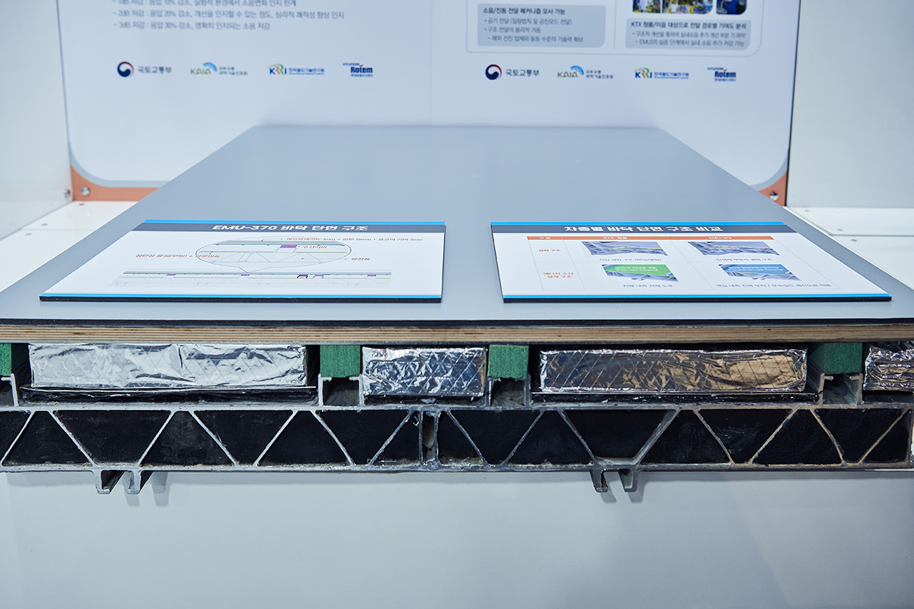 To mitigate these challenges, Hyundai Rotem set noise and vibration thresholds from the early development stages and conducted extensive testing and simulations. Key measures include filling aluminum-extruded body sections with sound-absorbing materials and applying floating-floor technology, in which floor panels are structurally separated from the base to effectively minimize the transmission of noise and vibration.