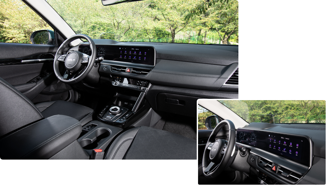 더 뉴 셀토스의 변속기 조작부에 도입된 다이얼 방식 SBW는 이러한 새로운 파워트레인에 대한 경험을 증폭시켜준다. 직관적으로 고안된 주행모드 스위치도 마찬가지다. 물론 더 뉴 셀토스 실내 디자인에 대한 첫인상을 크게 바꿔 놓은 건 파노라마 디스플레이다. 이렇게 빨리 소형 SUV에서 10.25인치 디지털 화면 2개를 연결한 클러스터(계기판) 및 내비게이션 화면을 보게 될 줄은 몰랐다. 국산 준대형 세단에 처음 적용된 것이 불과 엊그제 같은데 말이다. 게다가 베젤 두께나 단차 등 마감 완성도도 흠잡을 곳이 없다.