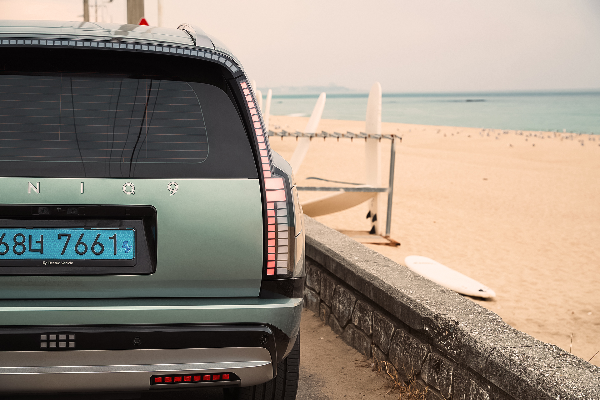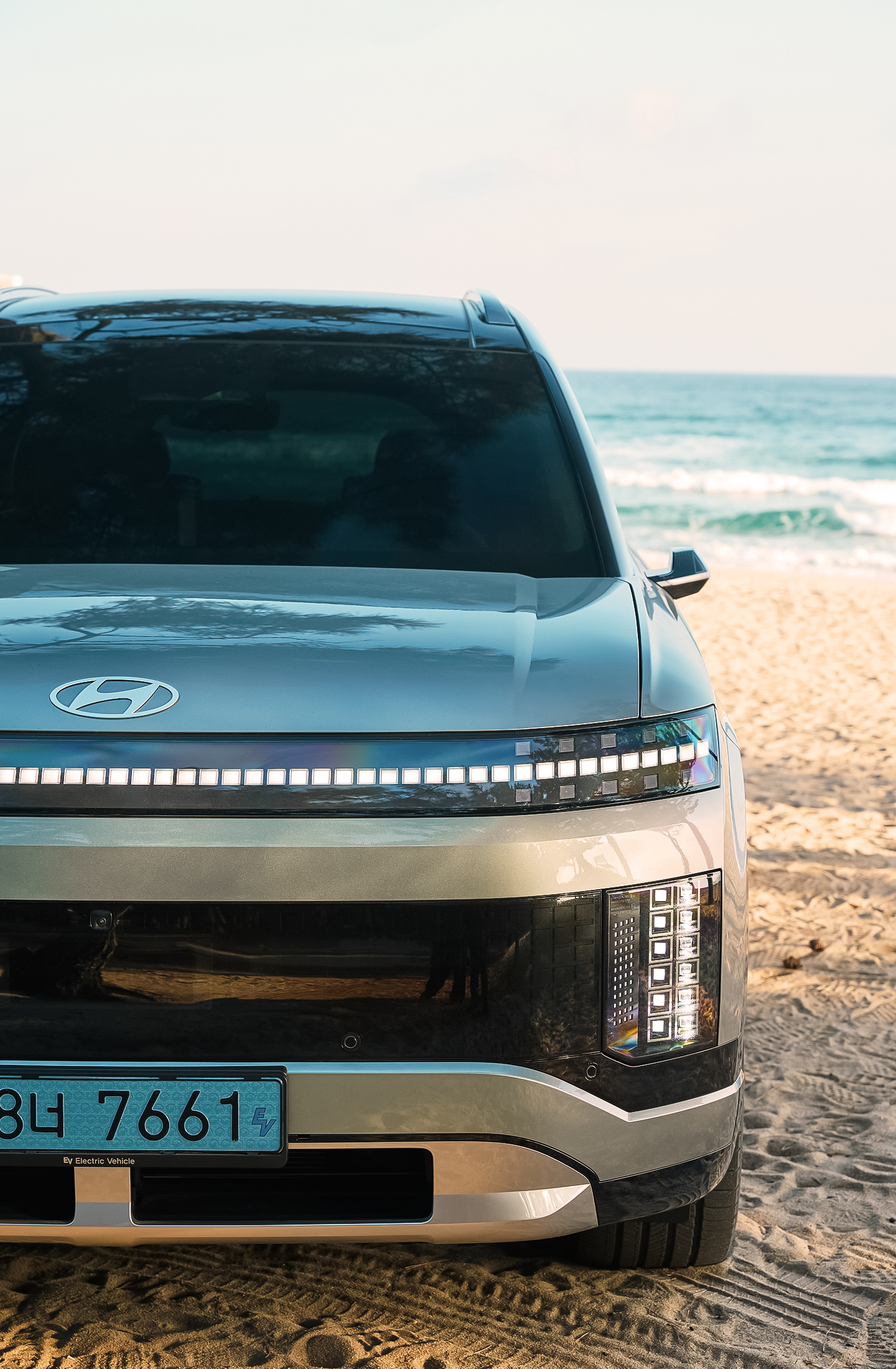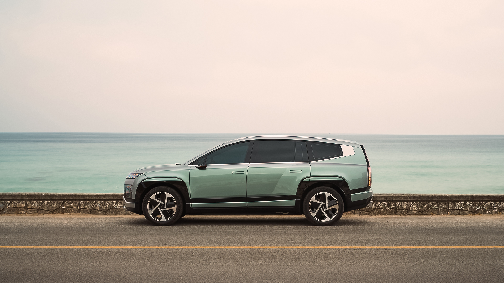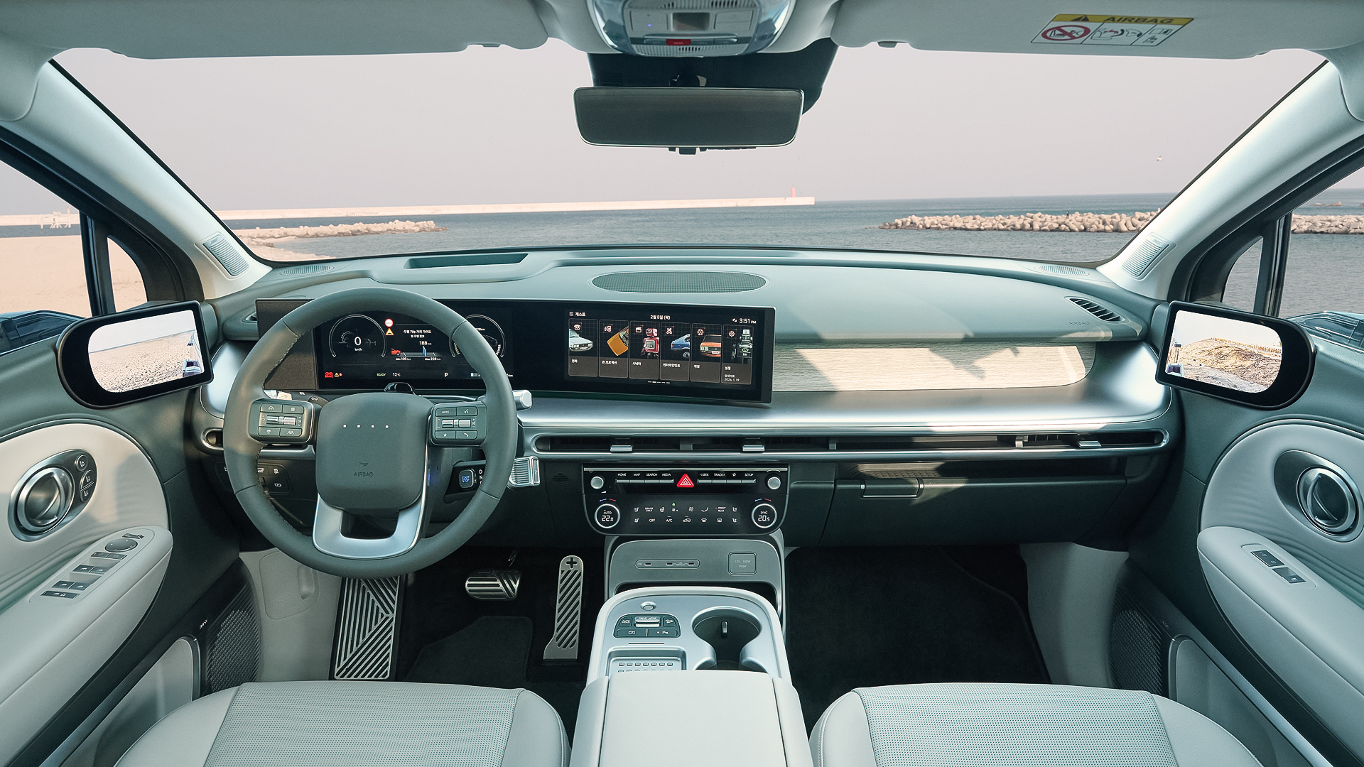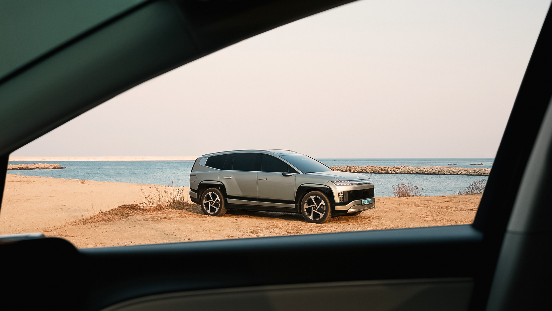해안과 맞닿은 카페를 나와, 이동 전 바다와 가장 가까운 곳에서 잠시 차를 정차해봅니다. 실내는 아이오닉 9의 성격을 아주 또렷하게 보여줍니다. 대형 전기 SUV가 실내를 어떻게 구성해야 하는지 명확하게 제시하죠. 차체 크기는 5,060×1,980×1,790mm, 휠베이스는 3,130mm에 달합니다.