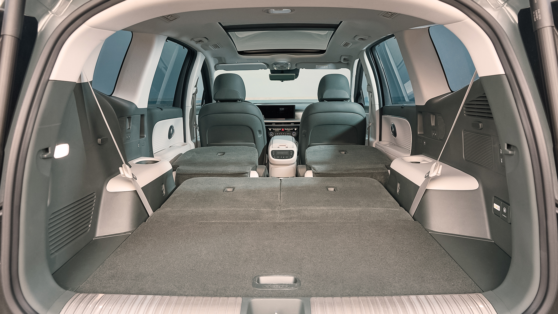 이 수치는 단순한 크기가 아니라 1열부터 3열까지 공간의 톤을 균일하게 유지하기 위한 기반입니다. 아이오닉 9은 2열에서 3열로 이동해도 분위기가 급격히 바뀌지 않도록 설계됐습니다. E-GMP 플랫폼 덕분에 3열까지 이어진 평평한 바닥은 꼭 편안한 카페 소파에 앉은 듯한 안정감을 줍니다.