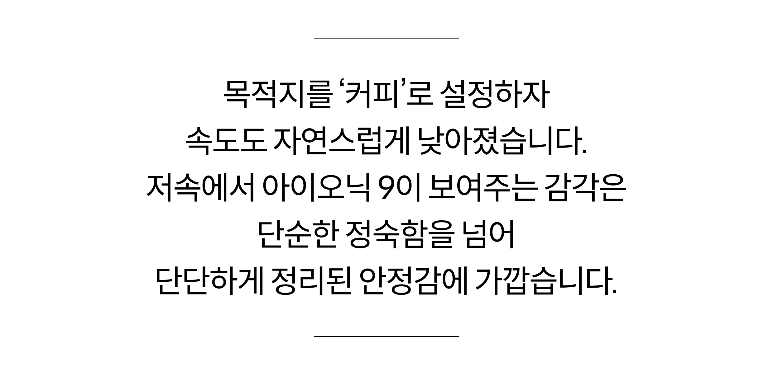 좋은 커피는 시간을 들여 마셔야 합니다. 좋은 이동도 비슷합니다. 빠르게 도착하는 대신, 천천히 좋은 기분을 만끽하며 목적지에 이르는 동안의 감각을 또렷하게 남기죠. 그래서 우리는 이번 여정에서 ‘도착’보다 ‘과정’을 선택했습니다.