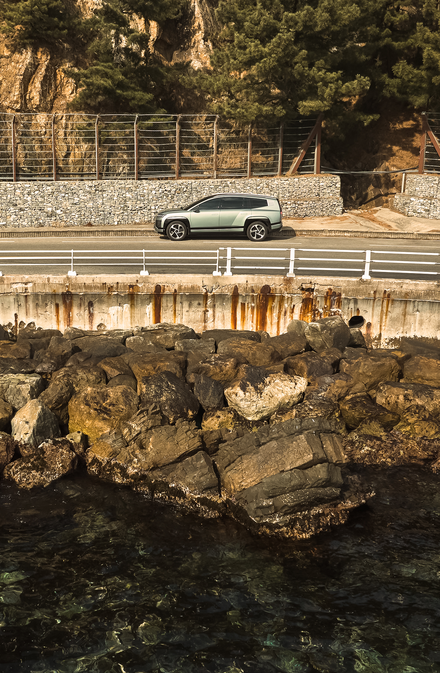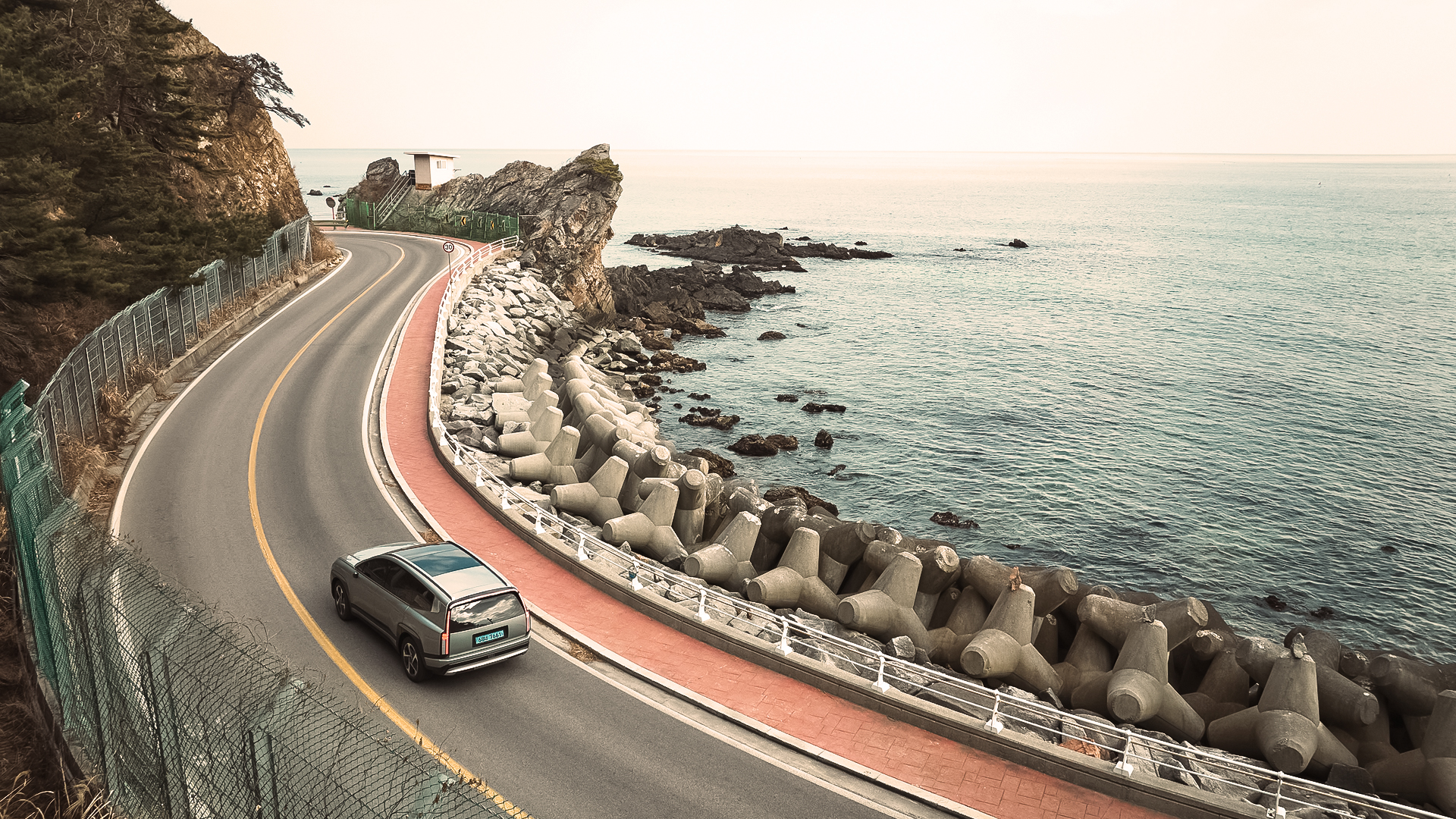 그 순간 아이오닉 9은 단순한 이동 수단을 넘어 머무는 공간이 됩니다. 충전이 주는 안도감, 균형 잡힌 움직임이 만든 편안함, 그리고 바다 앞에서 완성한 한 잔의 커피. 목적지는 특정 좌표가 아닌 우리의 ‘취향’이었습니다. 마지막 한 모금까지 음미한 뒤, 비로소 최종 목적지인 헌화로로 향합니다.