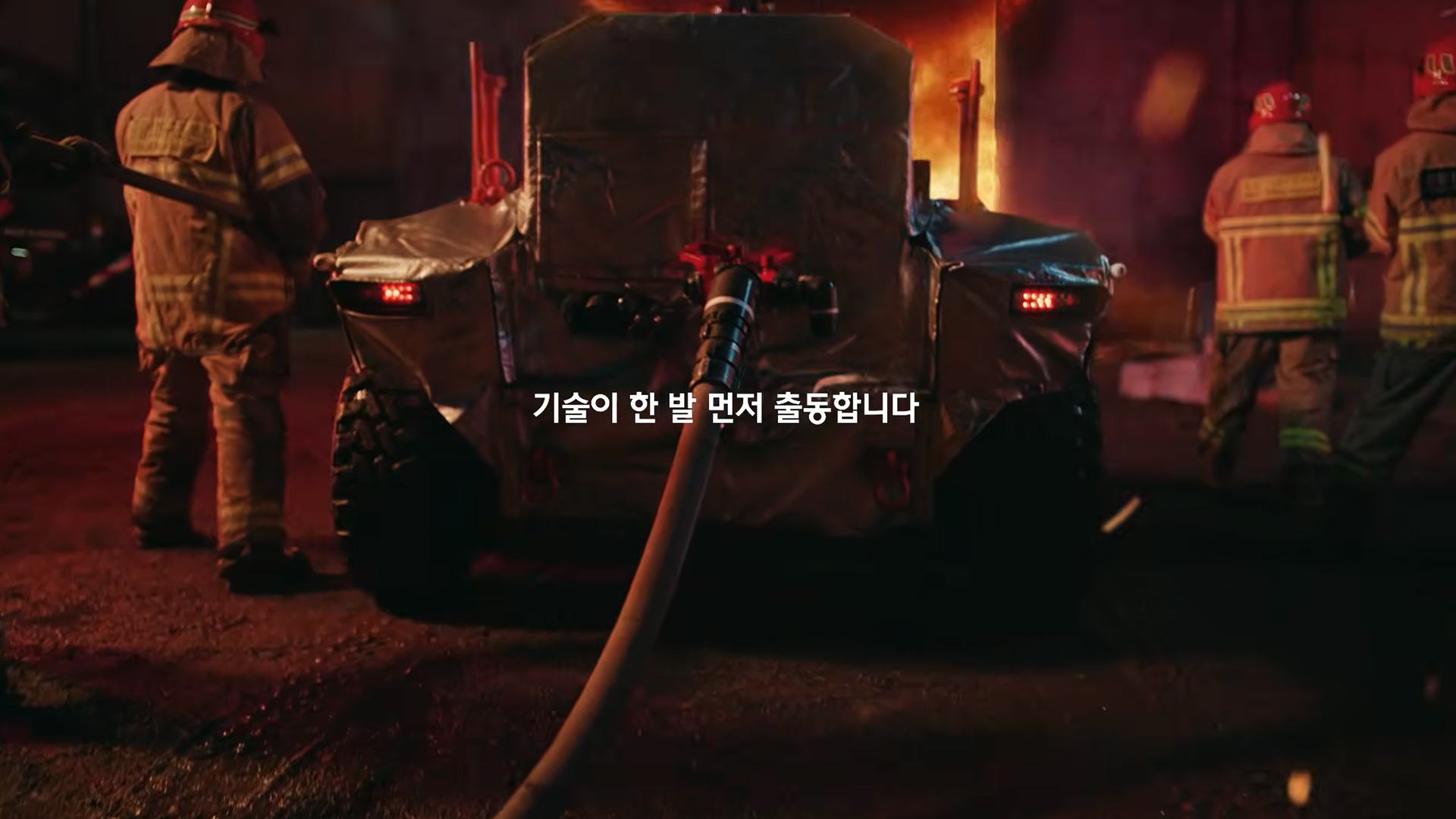 화재·폭발 현장의 긴박한 순간, 사람이 접근하기 어려운 구역에 먼저 투입돼 대응의 안전성과 효율을 높이는 무인소방로봇의 모습, 더불어 현직 소방관들의 목소리와 사진, 실제 현장 장면이 더해져 내용에 사실감을 보탭니다. 내레이션에 참여한 중앙119구조본부 임팔순 구조대장의 절제된 목소리도 과장 없이 메시지를 전달하며, 영상 전체에 조용한 여운을 남깁니다.
