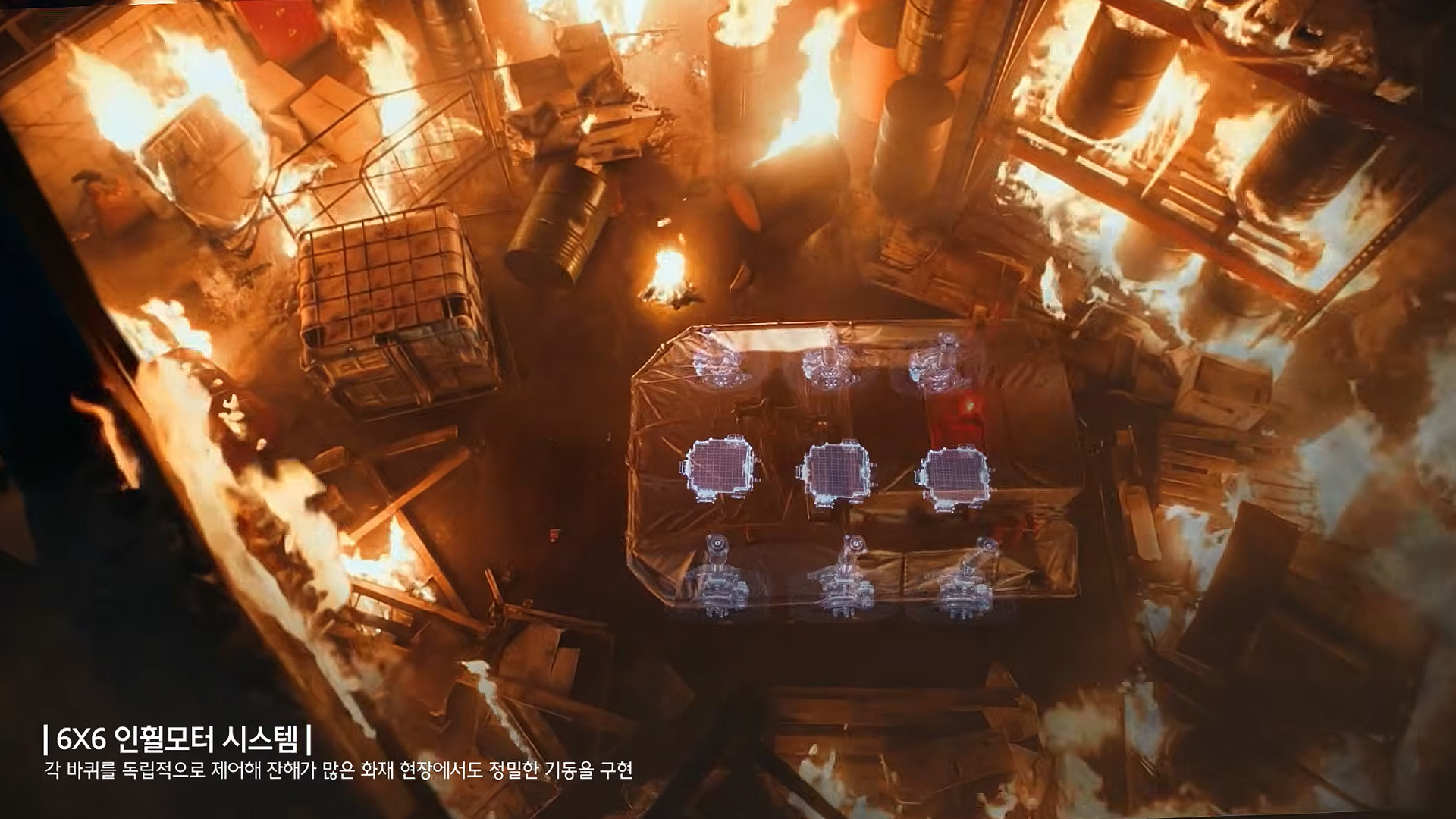 무인소방로봇이 지닌 다양한 기술 덕분에 소방복과 공기통, 방독면만으로는 극복하기 어려운 환경에서도 거뜬하게 임무를 해냅니다. 특히 ‘첨단 자율주행 보조시스템’과 ‘AI 시야개선 카메라’의 시너지는 주목할 만합니다. 영상 속 무인소방로봇 진입 장면처럼 소방관이 앞을 전혀 볼 수 없는 상황에서 그들의 눈을 대신해, 무사히 화재 지점으로 이동할 수 있도록 돕기 때문입니다.