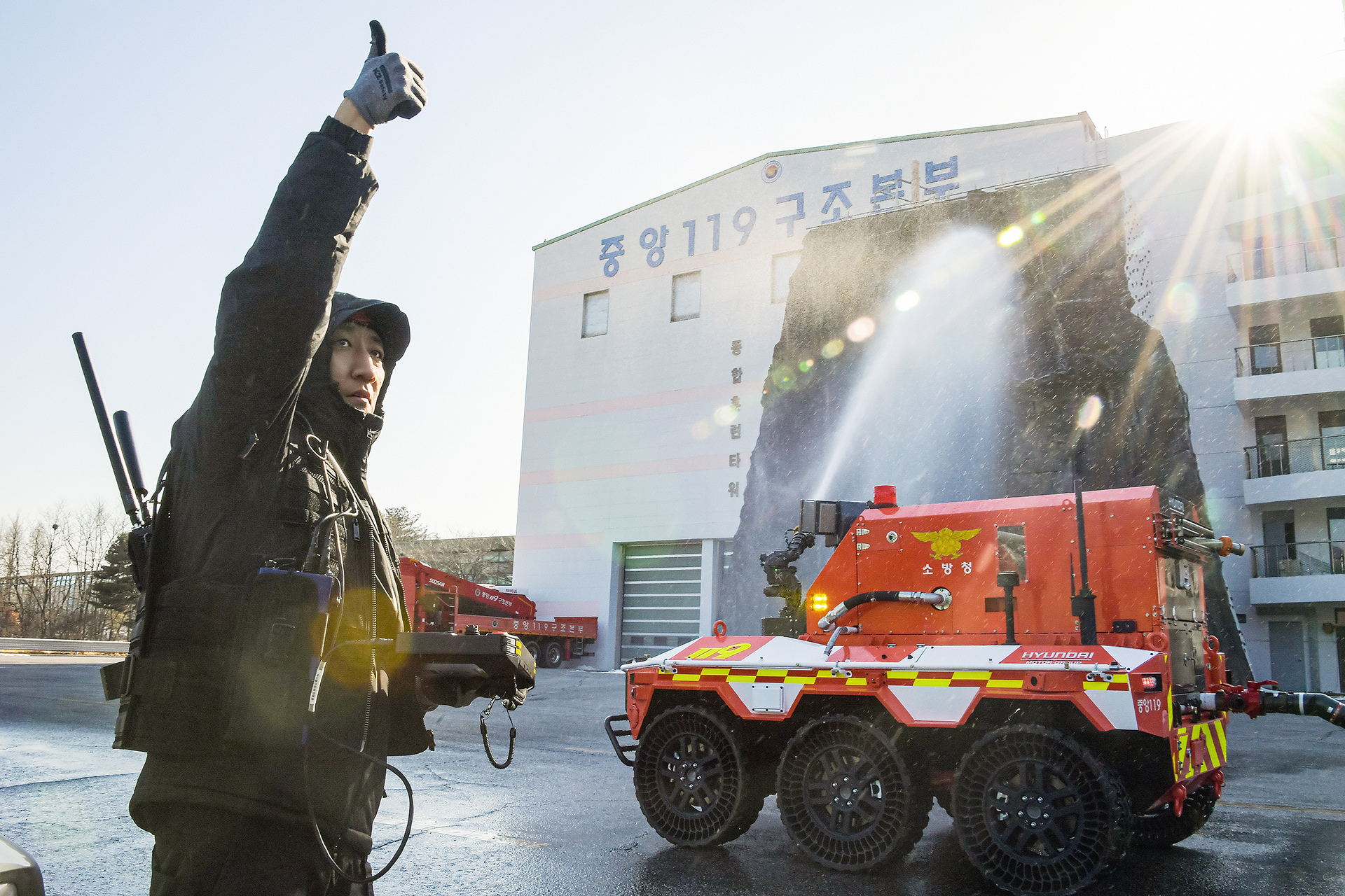 이처럼 무인소방로봇은 현대차그룹과 소방청의 수많은 인력들이 머리를 맞댄 결과물입니다. ‘안전’이라는 뚜렷한 목표가 있었기에 서로 다른 사람들이 한 방향을 바라볼 수 있었죠. 극한의 환경을 헤쳐온 소방관들의 조언은 무인소방로봇 제작에 상당한 도움이 됐습니다.