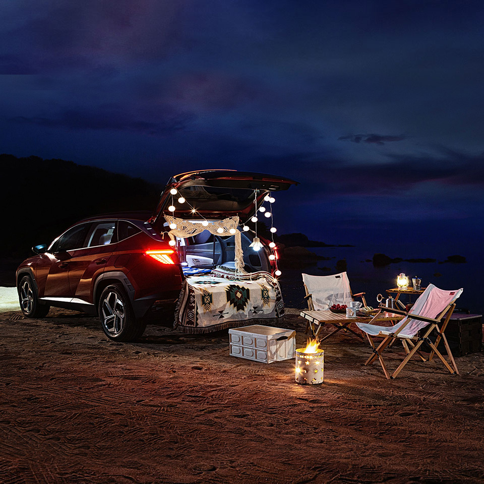 Let's drive our car to a secluded and beautiful place to be in our own space. A car can be turned into our workplace, lounge, or accommodation if we could find a quiet place to park. New terms emerge such as ‘Carffice’, ‘Carcnic’, and ‘Mobilitel’, implying that there can be endless ways to utilize vehicles. “Reinventing space” is possible indeed. Together with Tucson, featuring much more sensuous and dynamic looks, shows a new lifestyle that can be enjoyed in a car.