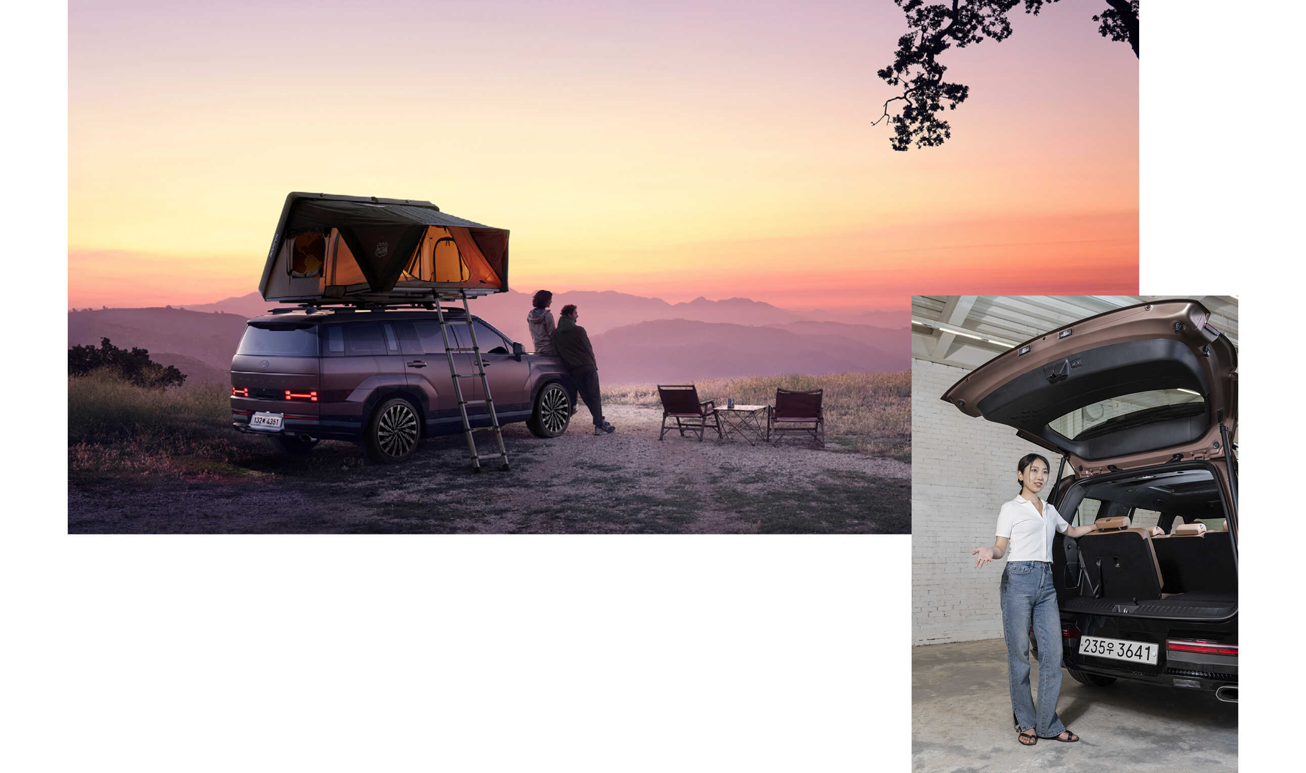 Research Engineer Cho Hanna | The most significant feature of the new Santa Fe is that it offers an interior space unaffected by the driving environment, whether in the city or outdoors. Thus, Santa Fe is composed of a sophisticated and urban interior based on a comfortable space that is also suitable for outdoor activities. Moreover, from the planning stage of its development, Santa Fe considered various leisure activities such as camping and car camping. The maximized openness of the tailgate and the ample legroom and headroom for the 3rd-row passengers have become signature attractions of Santa Fe.